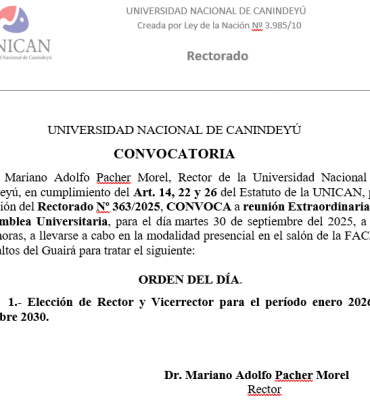 Convocatoria a reunión extraordinaria de la Asamblea Universitaria
