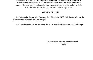 La Facultad de Ciencias de la Salud (FACISA), de la Universidad Nacional de Canindeyú (UNICAN) invita al XIV Congreso Regional de Cirugía, a realizarse los próximos días 12 y 13 de abril, en el Salón Auditorio de la UNICAN, sede central Saltos del Guairá.