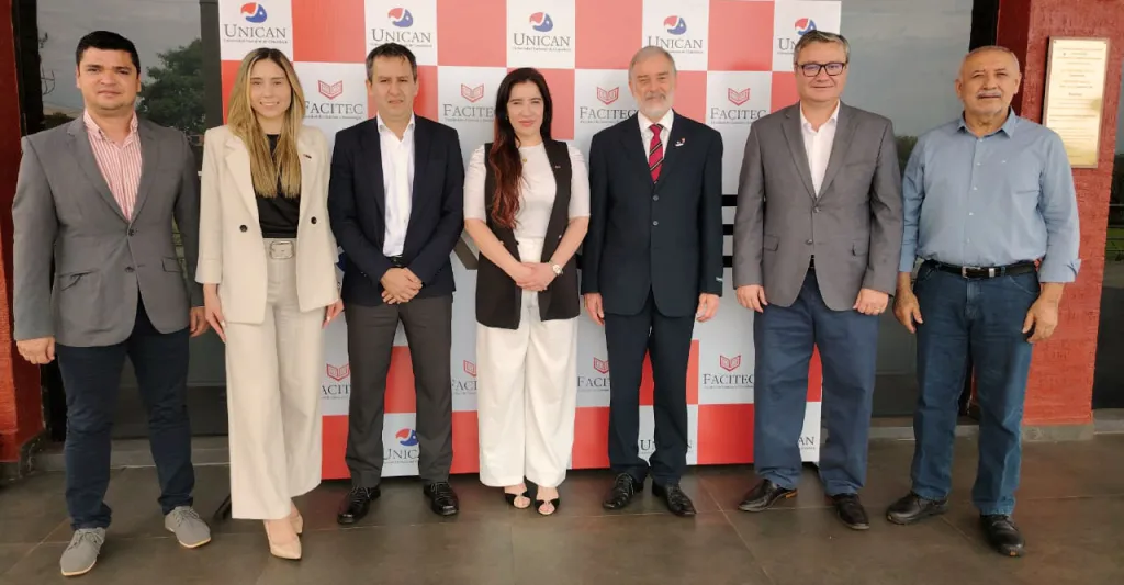 En la mañana de este viernes 17 de octubre, el rector de la Universidad Nacional de Canindeyú (UNICAN), Dr. Mariano Adolfo Pacher, junto con los decanos de la Facultad de Ciencias y Tecnología (FACITEC), MSc. Rodrigo Martínez; de la Facultad de Ciencias Económicas y Empresariales (FACEM), MSc. Ariel Ramírez; y de la Facultad de Ciencias Veterinarias (FACIV), Dr. Arístides Britos, mantuvieron una reunión con representantes de la Agencia Financiera de Desarrollo (AFD), en la sede de Saltos del Guairá.