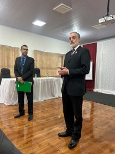 En la mañana de este viernes 17 de abril, el Dr. Guillermo Centurión Arrúa fue presentado a funcionarios, docentes y estudiantes de la facultad por una comitiva del Consejo Superior Universitario (CSU), encabezada por el Rector de la UNICAN, Dr. Mariano Adolfo Pacher Morel.